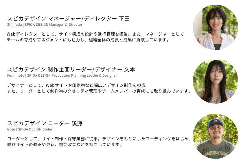 スピード感のある環境の中で日々成長を実感できることに加え、Webだけでなく幅広いデザインに挑戦でき、早い段階から実務に携われるのも魅力のひとつです。今回は、未経験入社の下田さんと文本さん、そしてキャリア入社の後藤さんに、日々の挑戦や成長の様子を伺いました!