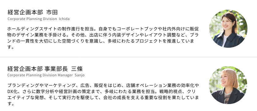 サイト制作に携わった経営企画本部の三條さんと市田さんに、サイト制作の経緯や完成までの道のり、コンテンツやデザインに込めた想いについて伺いました。